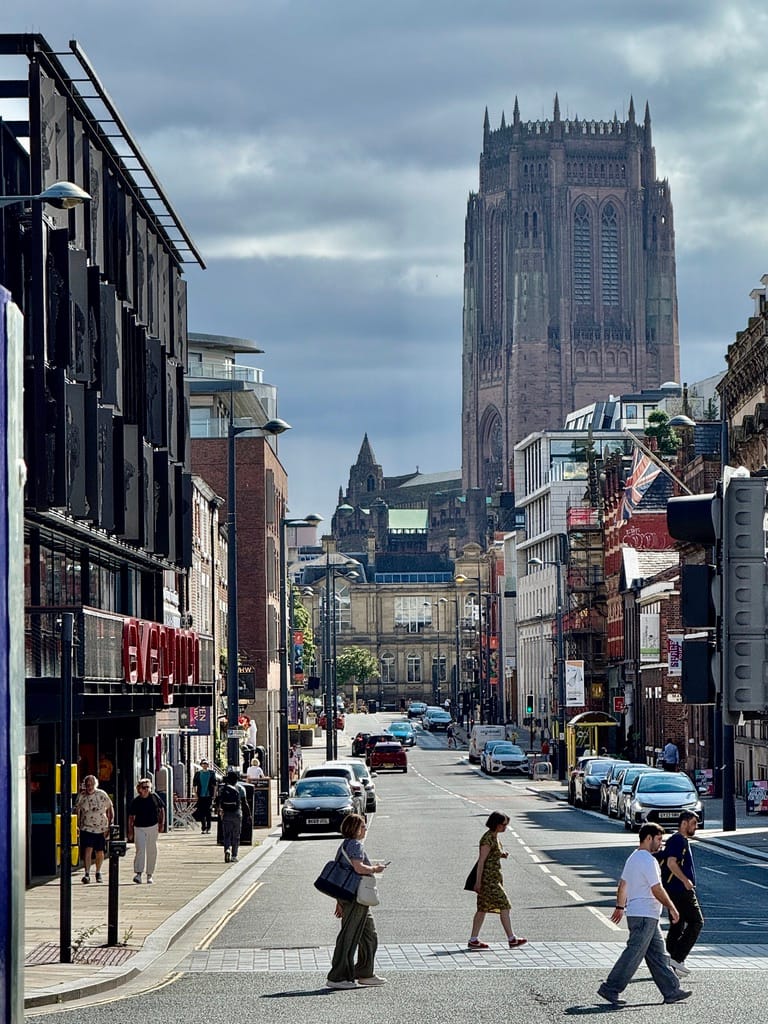 By Roj in Place — 16 Aug 2025 A Liverpool Short - 13 August 2025 Cathedral of Christ the King The White Hart on Hope Street | Anglican Cathedral from Hope Street | Coloured Sunshine Rays