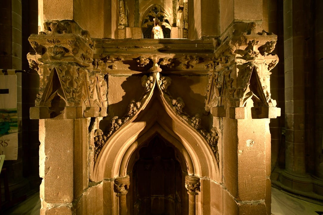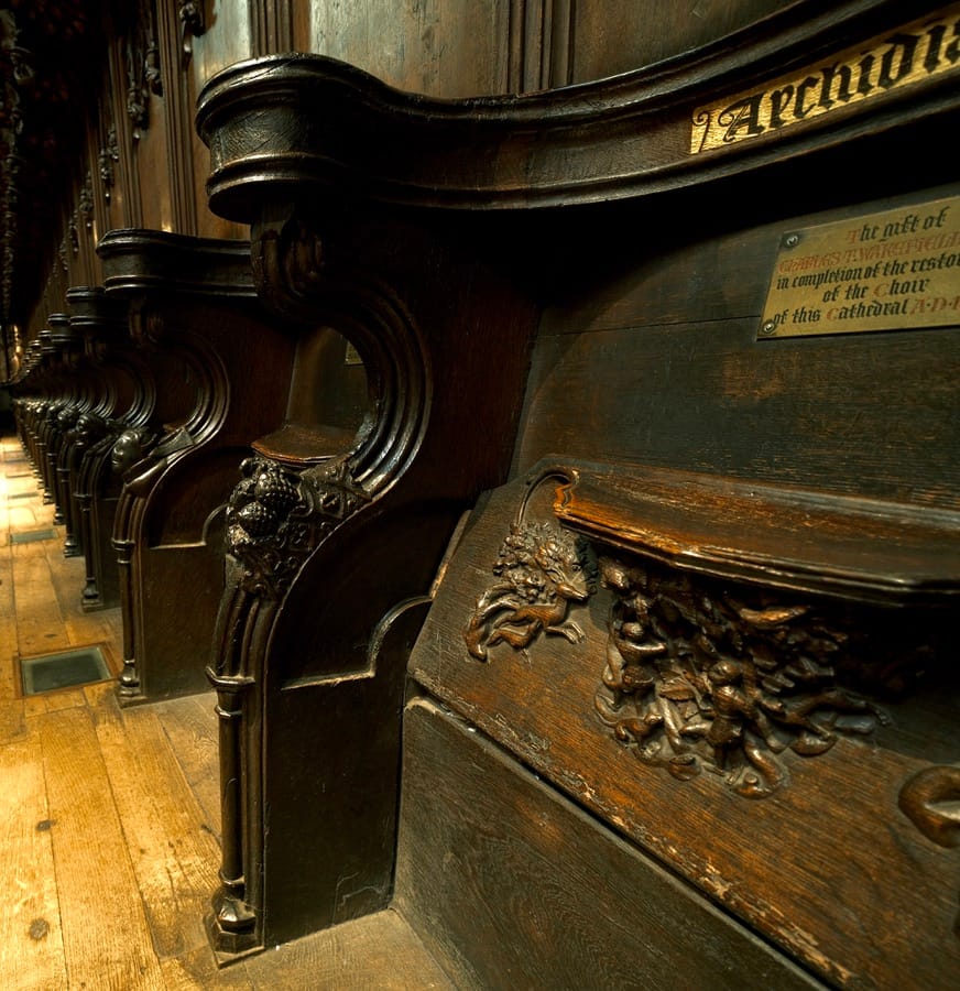 The unusual base of the shrine of St.Werburgh || Misericords in the Quire