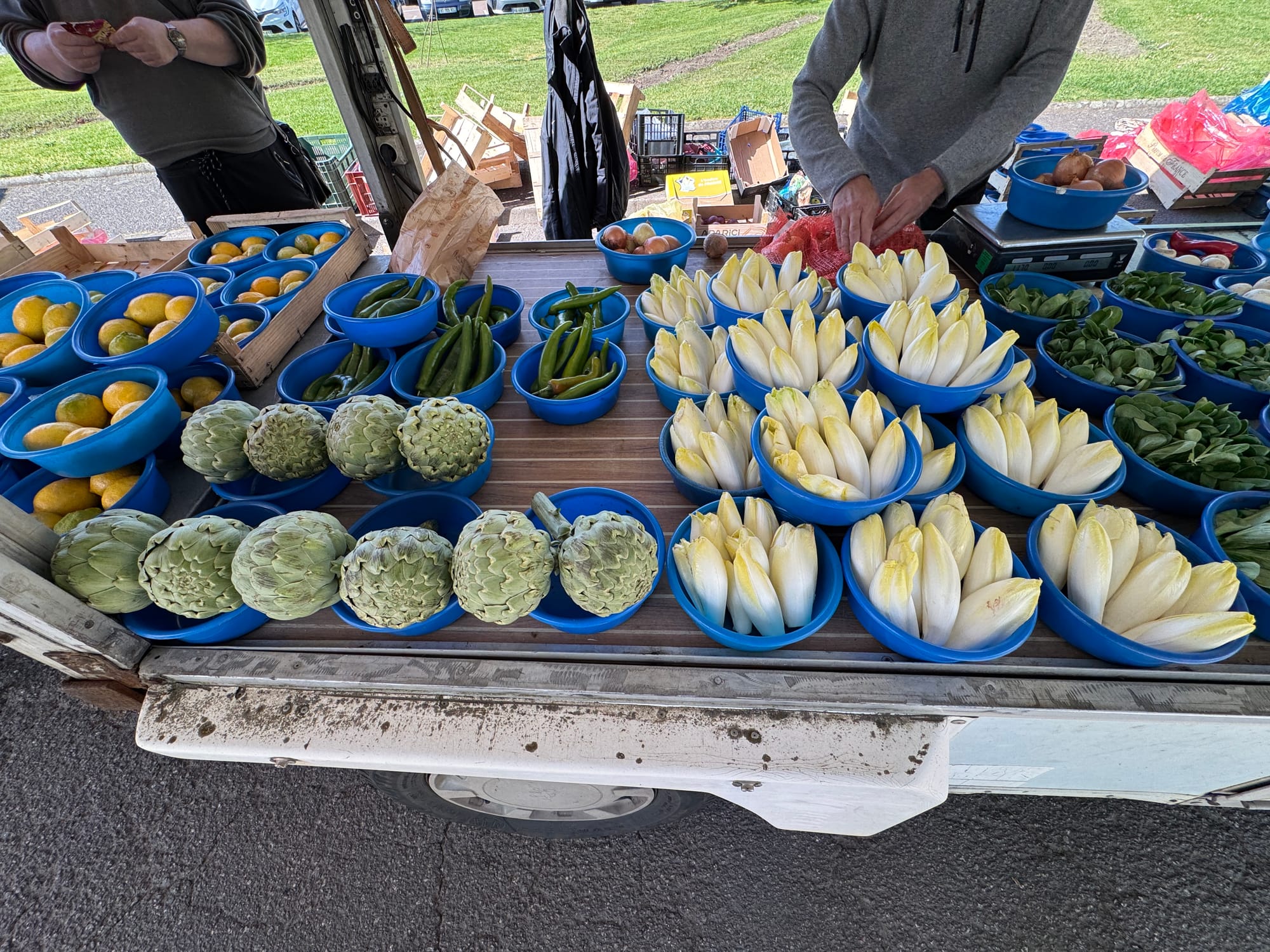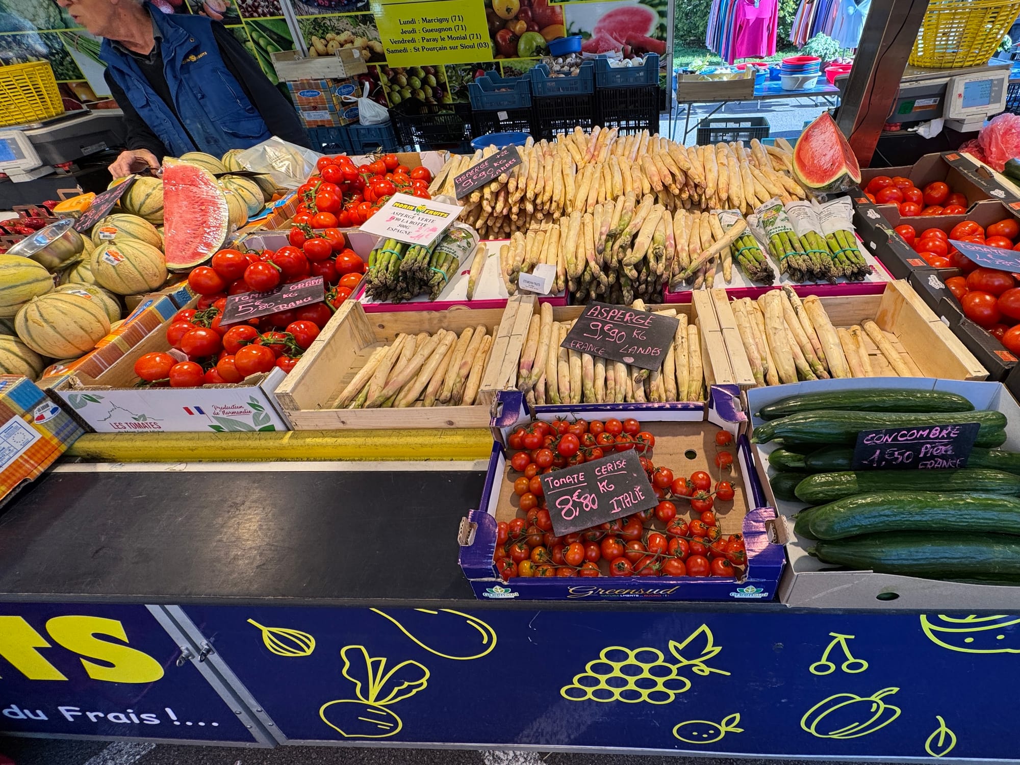 ThisDay Rock ‘n’ Roll Circus performer appearing in Paray-le-Monial at weekend seen at today’s market.