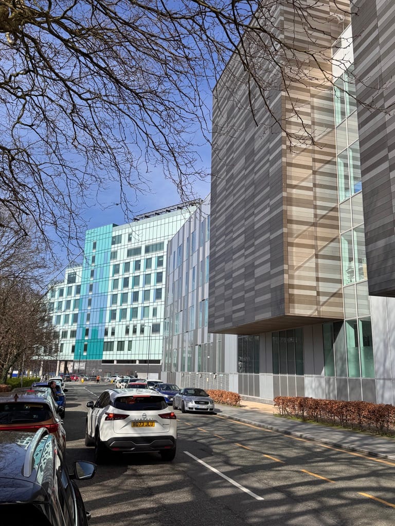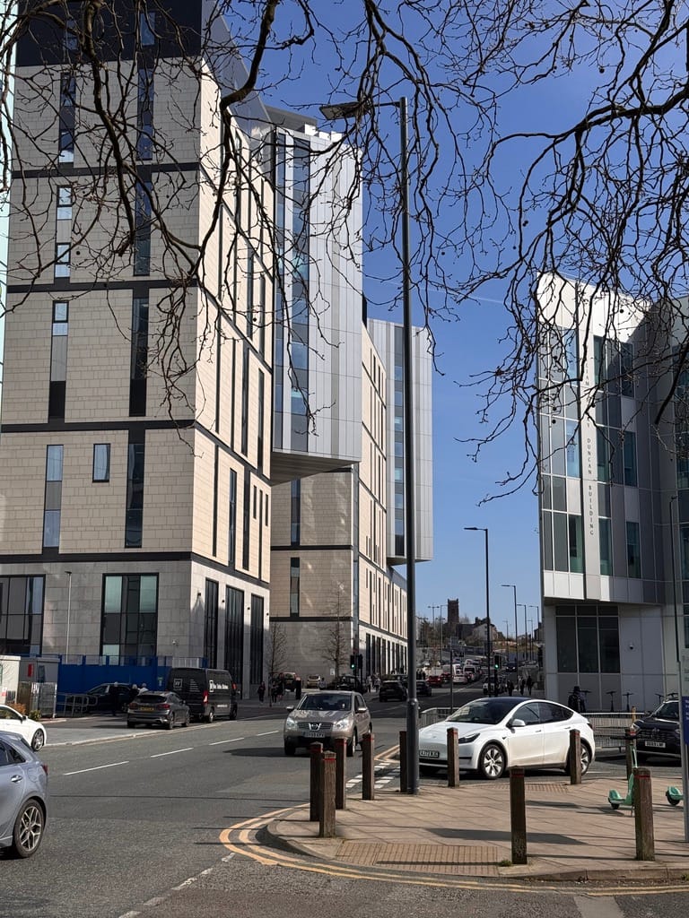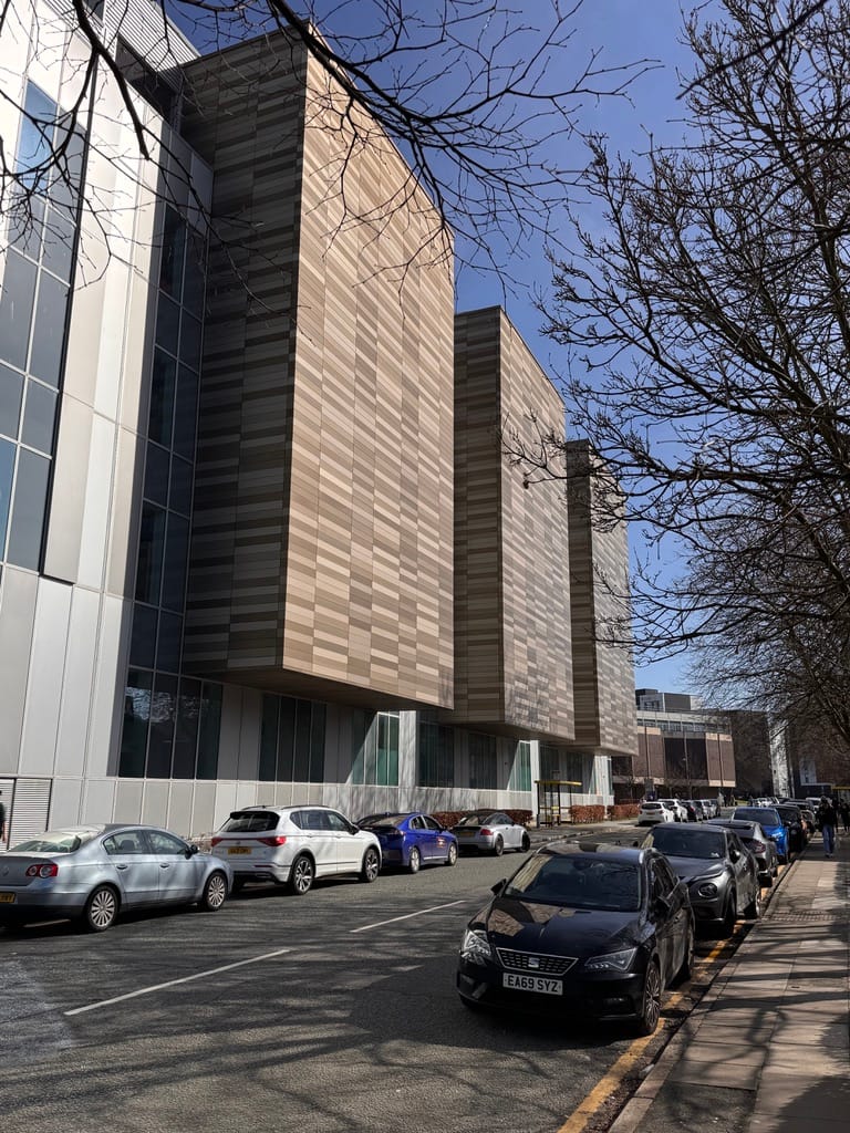 A brief walk through the canyons of modern architecture around the university and hospital. A remarkable transformation over the past fifteen years, eliminating the juxtaposition of the post-modern Metropolitan Cathedral with the old Victorian university buildings. Liverpool is once again becoming a burgeoning metropolis, echoing the days of when it was the most formidable sea-fairing city in the world.
