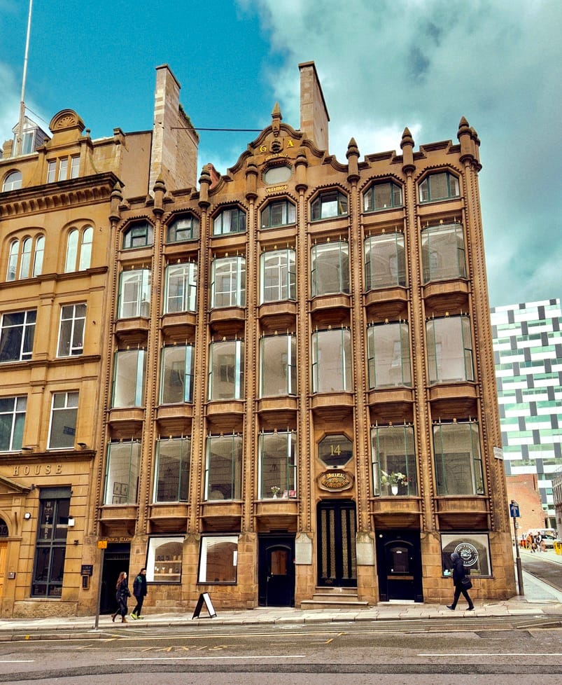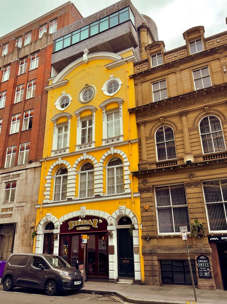 The Incongruous Oriel Chambers and 'Yellow Brick Road" building both on Water Street (note rooftop addition)