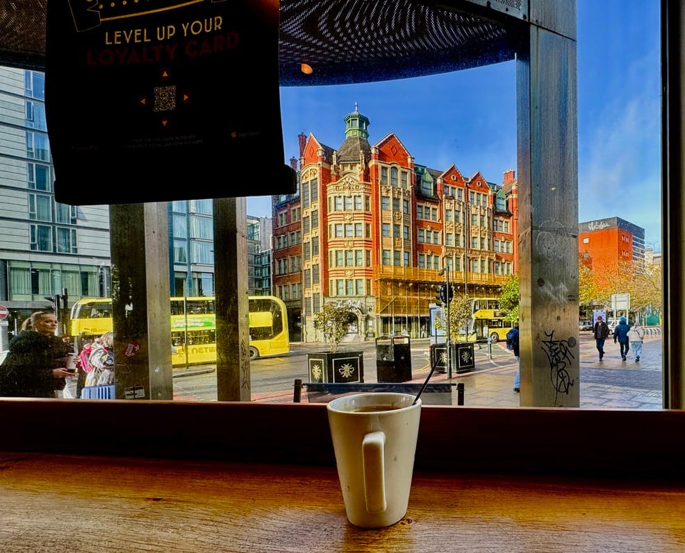 We couldn't set out without a caffeine shot, and so we all repaired to Cafe Nero at the bottom of Piccadilly Rail Station approach, where we were joined by some fellow travellers with a similar addiction.