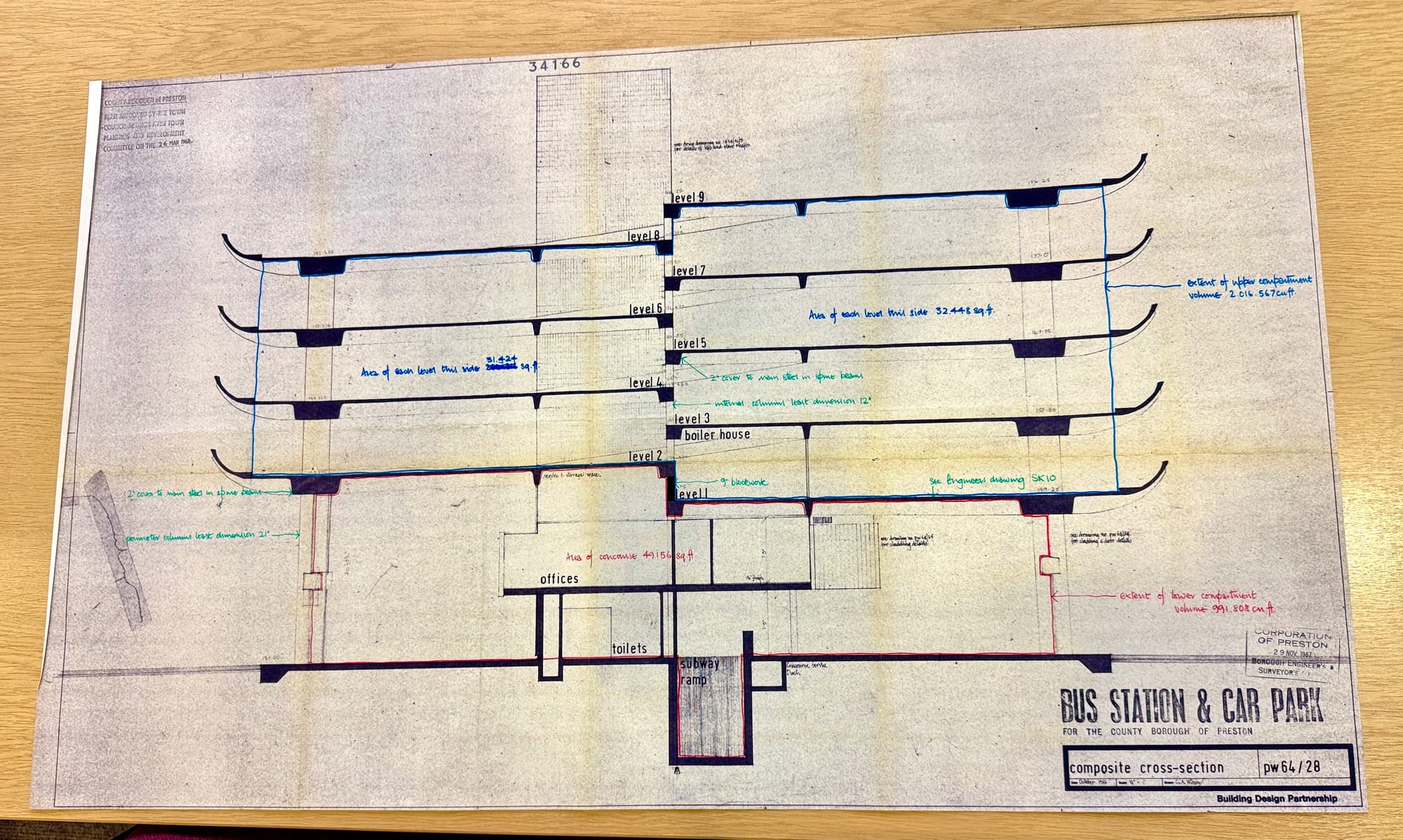 Sectional Drawing through Bus Station and Car Park by BDP 1966