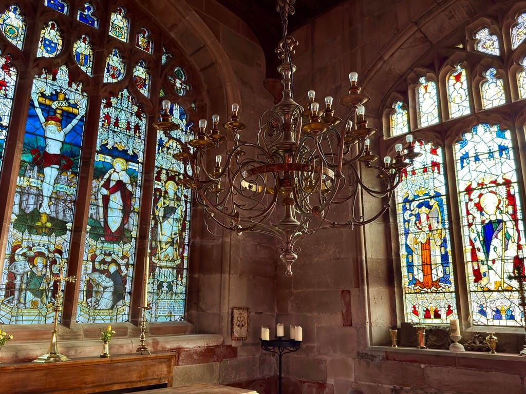 Rich in exquisit wooden carved screens and stained glass windows.