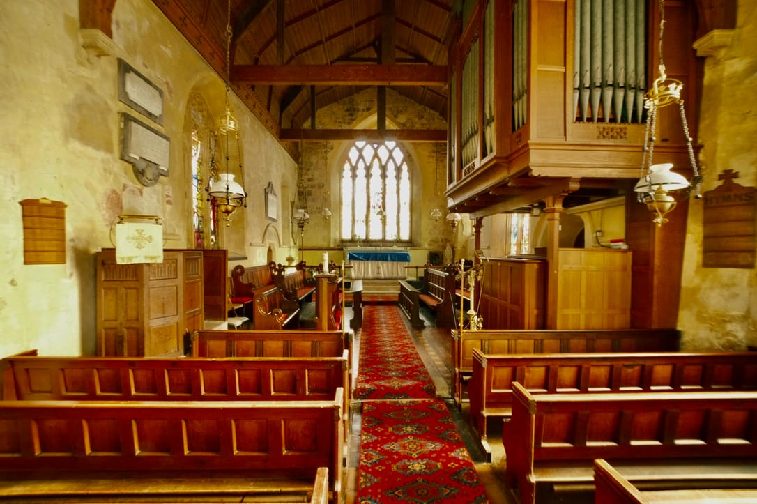 The Nave showing the elevated organ on the West wall.