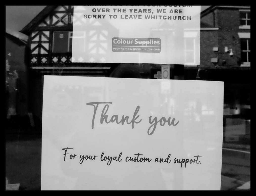 Colour Supplies (previouly House Makers) closed its doors for the last time on Friday evening 27th February 2026. Fifty five years as a family run business since its beginnings in supplying homes and businesses in the greater Whitchurch area of Shropshire. A very sad loss to this declining town and to the population it has served so well.